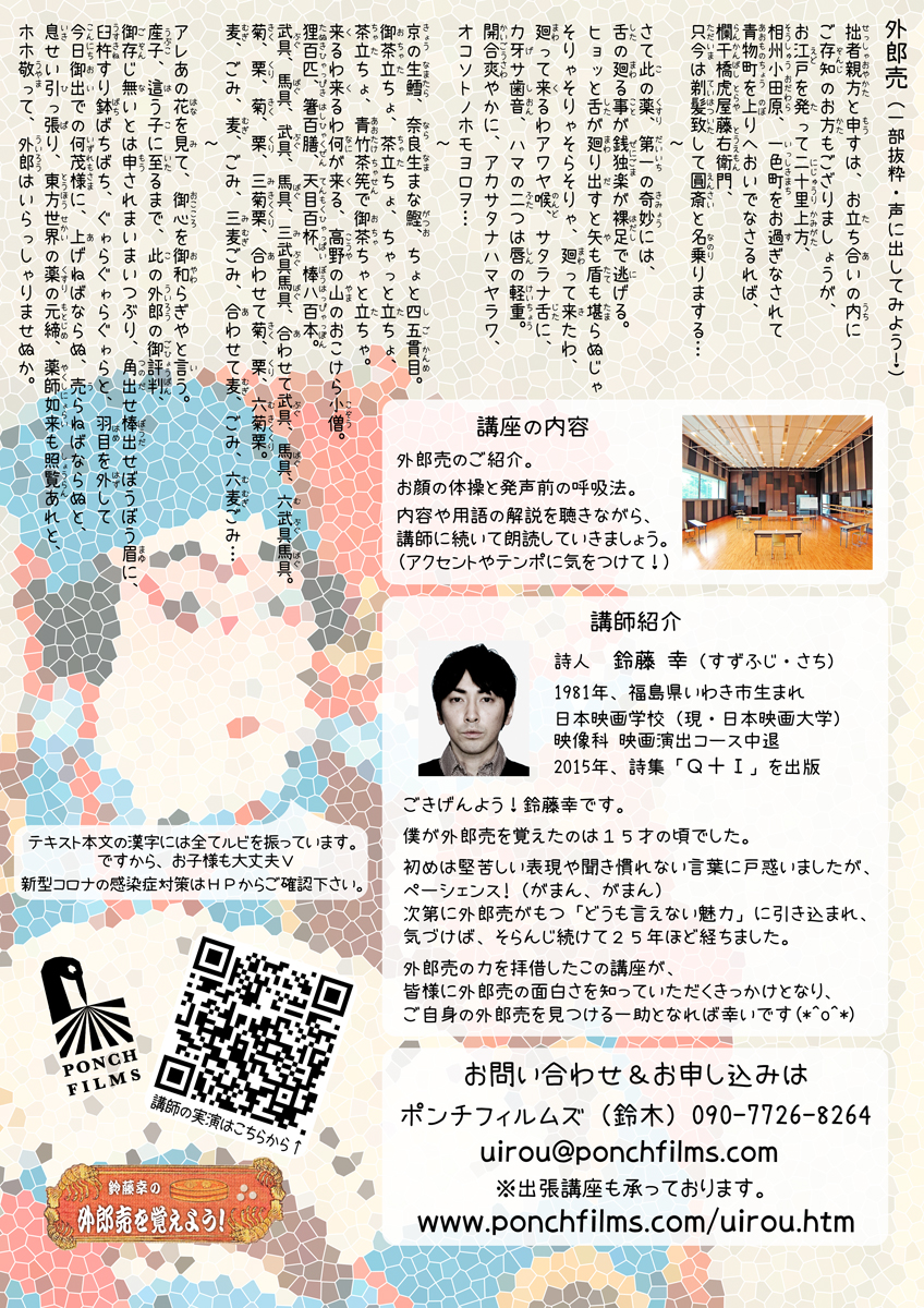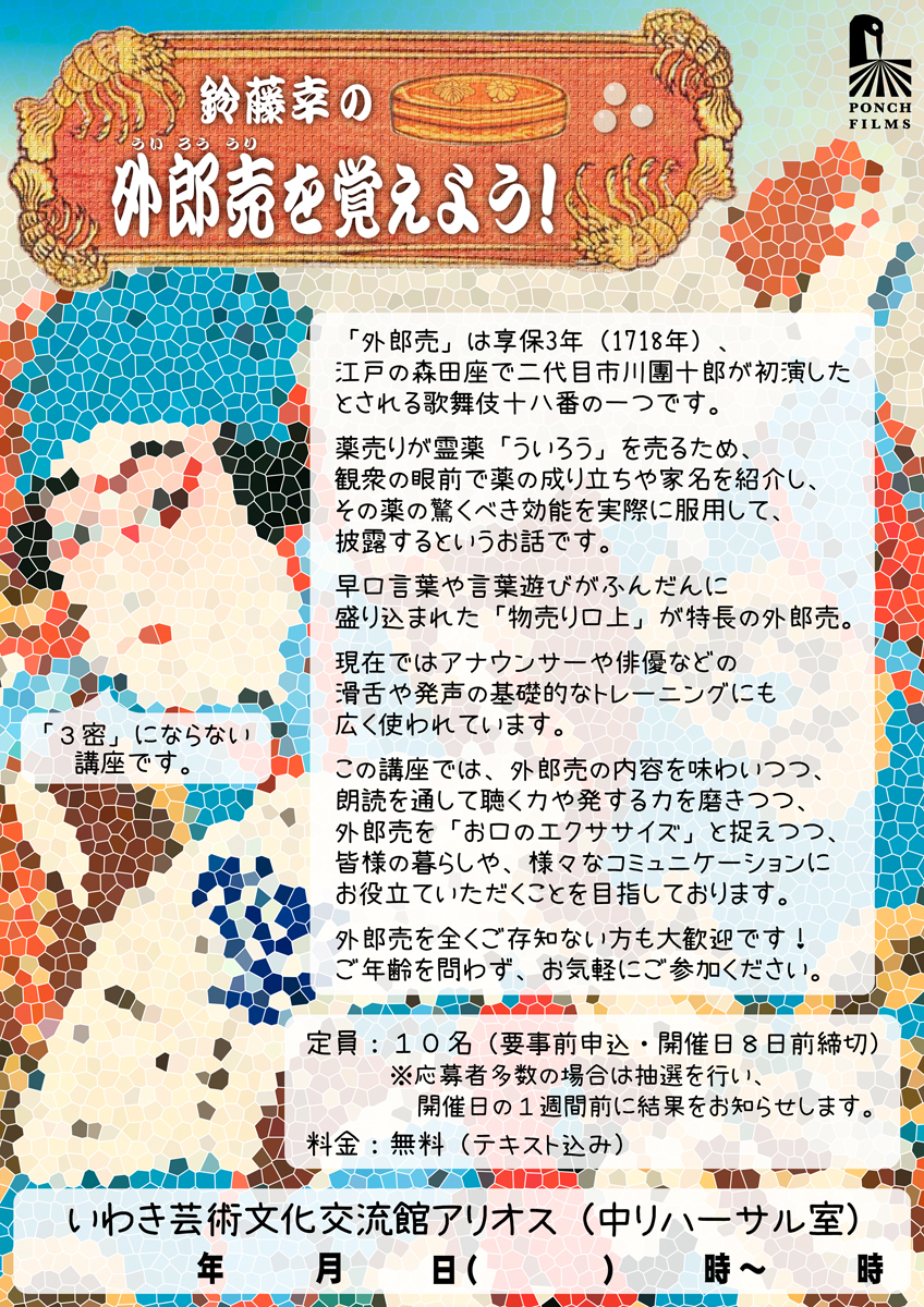 鈴藤幸の「外郎売を覚えよう!」講座のご案内です。